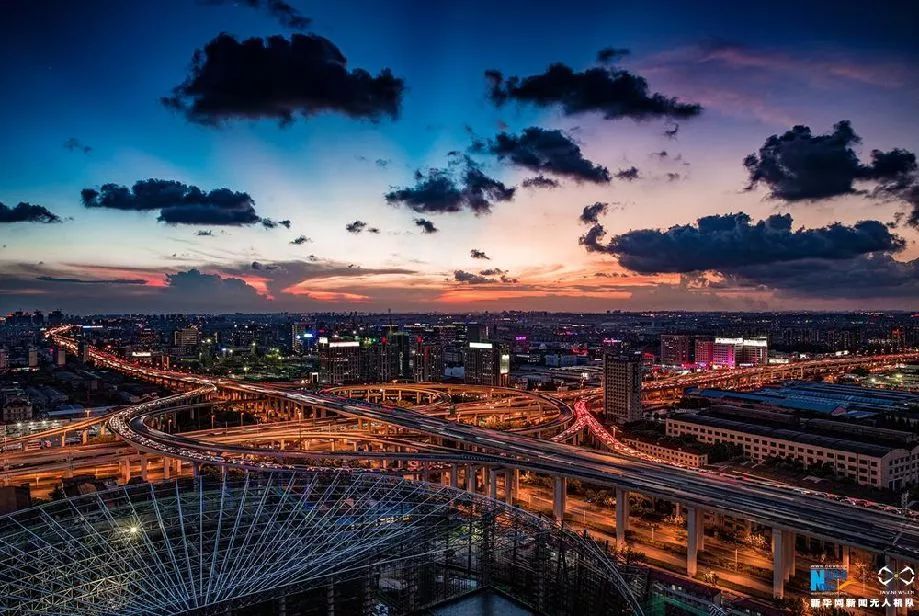傍晚时间的上海立交桥。新华网发 田横 摄 除了“轨谈上的长三角” “公路上的长三角” 这里还在推动诞生世界级机场群、口岸群